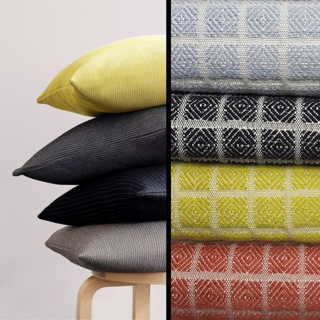 Annala X Suomen Käsityön Ystävät -yhteistyökokoelmassa on Lotta Ringin Suomen Käsityön Ystävissä 1949 suunnittelemat kuosit. Minttu on kudottu laadukkaana villakankaana monipuoliseen käyttöön sopivaksi.