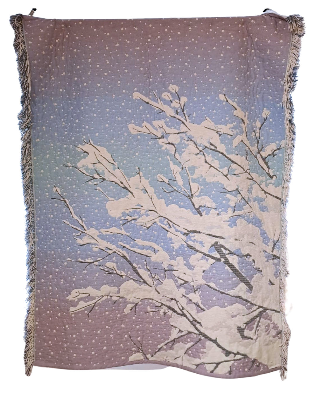 Annalan talvikaudelle kutoma vuodenaikapeitto, jonka luminen tunnelma tuo talven kotiin vaikka ulkona sataisi räntää.